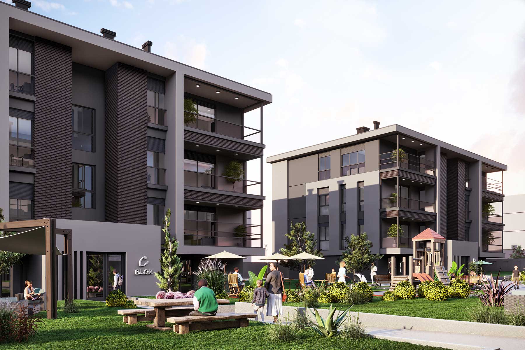 Proje, mimariden malzeme seçimine, çevre planlamasından enerji verimliliğine kadar her detayda çağdaş bir vizyonun izlerini taşıyor.